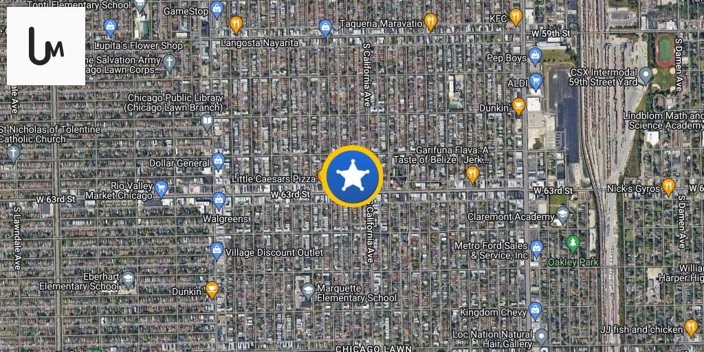 Shooting into Crowd Waiting at Bus Stop . 63rd and California. Three armed male offenders exited a red SUV and began firing gunshots at a crowd of people at the bus stop. The offenders then returned to the waiting vehicle and fled.