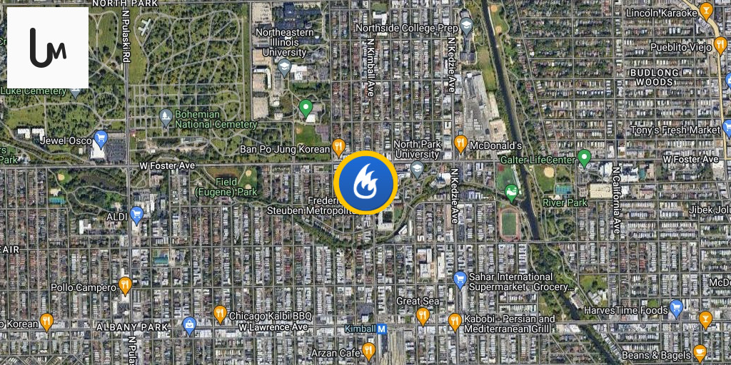 4646 N Marine Dr: a call of an arson just occurred at Weiss Hospital, looks like a patient set a garbage can on fire near the ambulance bay. the offender is an older male Black wearing a black coat and white pants. last seen northbound on Clarendon. Chicago