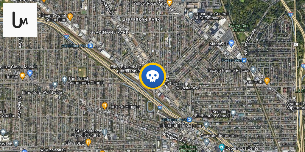 Male (42) stabbed to death, 5801 N River Road Chicago offender in custody, the crime scene is at the CTA Rosemont Blue Line Station