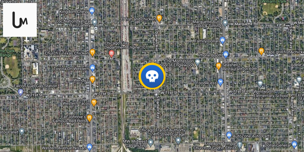 Man and woman shot on the 6800 block of S. Emerald Avenue in Chicago, Illinois, on May 24, 2025. Saturday afternoon at approximately 3:29 p.m., a man and a woman were near the sidewalk when they were struck by gunfire. A male victim self-transported to St. Bernard with unknown injuries at this time. A 52-year-old female victim was transported to U of C Hospital with at least one gunshot wound to her back and was initially reported in good condition. There are no suspects in custody.
