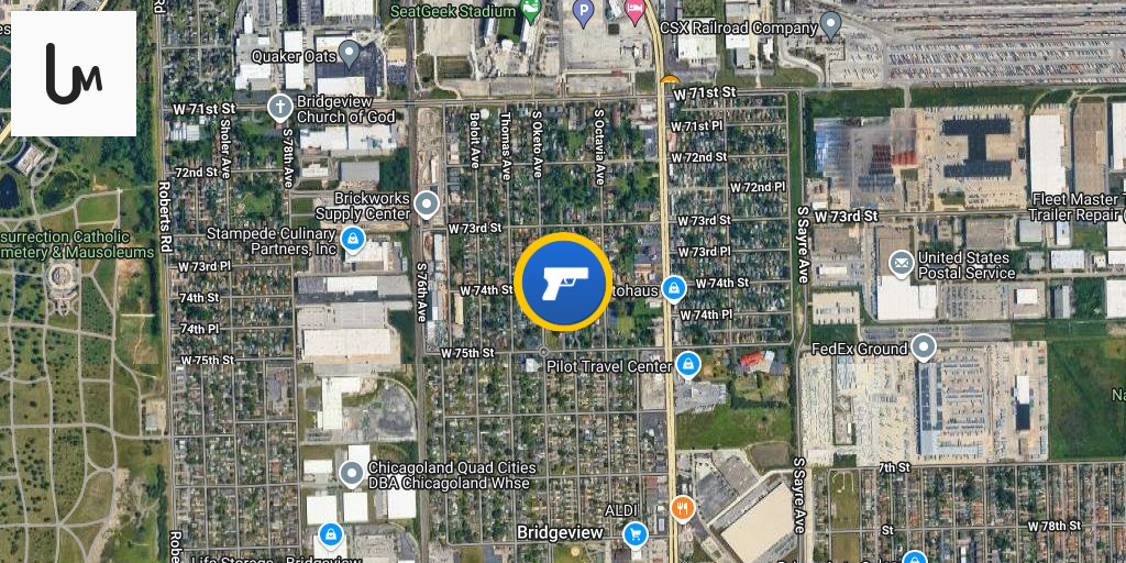 7400 block W 74th St & Stewart Ave / St. Bernard Hospital (Greater Grand Crossing): Male in 20s, shot in left leg (good condition), self-transports to St. Bernard's Hospital