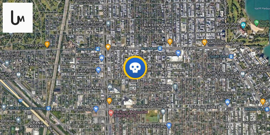 1900 block of E 72nd Pl (Greater Grand Crossing) Chicago An adult male at the location suffered a gunshot wound to the abdomen near 72/Maryland. He managed to self-transport to the hospital, where he was pronounced dead