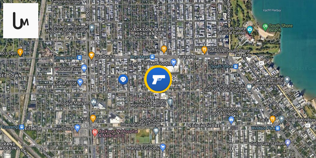 1900 block of E 72nd Pl (Greater Grand Crossing) Chicago An adult male at the location suffered a gunshot wound to the abdomen near 72/Maryland. He managed to self-transport to the hospital, where he was pronounced dead