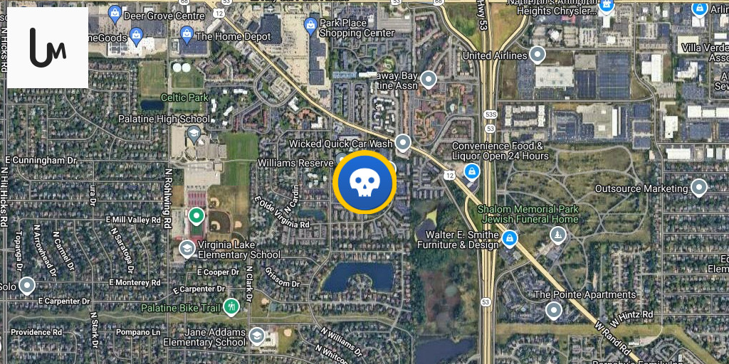 A man died after being found shot in a car that had crashed into several parked vehicles in Palatine Monday night, Palatine police said