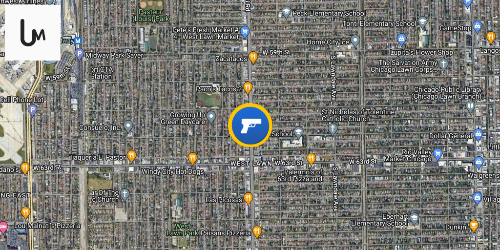 Homicide 3900 block of W 62nd St (West Lawn) Approx 8:32 PM Chicago A 45-year-old man was standing outside when he sustained a gunshot wound to the head near 62nd and Komensky. The victim was transported to Christ Hospital where he was pronounced