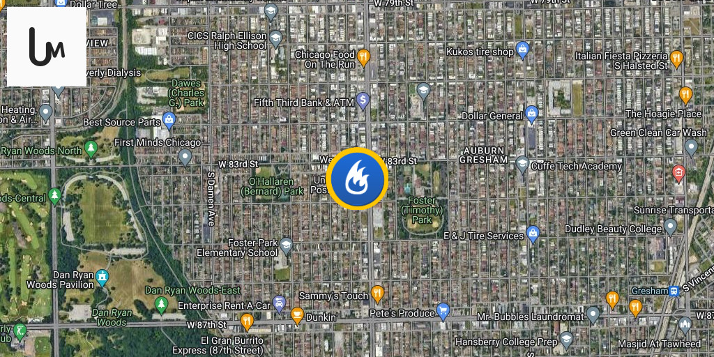 Post Office Fire 8345 S Ashland Ave (Auburn Gresham) Chicago Fire reported at a two-story post office building, originating from the ceiling with heavy smoke;