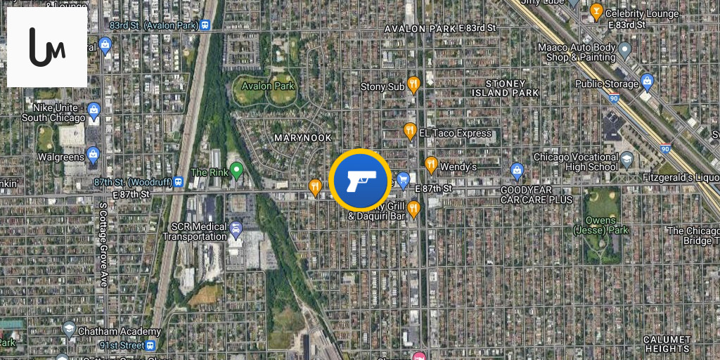 Person Shot 1400 block of E 87th St (Avalon Park) A 29-year-old man was walking along 87th near Dorchester when two men jumped out of a black sedan, pulled guns, and started firing at him. He was hit in the left leg and later